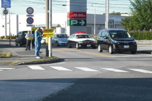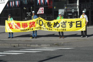 平成25年10月10日(木)の秋晴れの中、恒例の「交通事故『0』をめざす日」の街頭指導が行われました。この日は、朝から蒸し暑く、とても「秋」とは言いにくい状況でしたが、宇都宮南交通安全協会トラック部会の会員様と「事故0」を呼びかけさせていただきました。