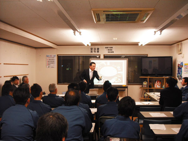 全体会議に株式会社プロデキューブ代表取締役高柳勝二氏をお招きし、「交通事故に遭わない防衛運転」について研修を受けました。研修の中では、交通事故に遭った瞬間の映像等も盛り込まれ、事故の悲惨さを改めて実感しました。