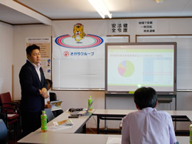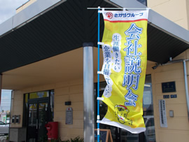 会社説明会のキャッチフレーズには”生涯働きたい 企業を目指してます”を掲げ、さがらグループの2社、相良運輸と日本引越センターでの合同説明会でした。